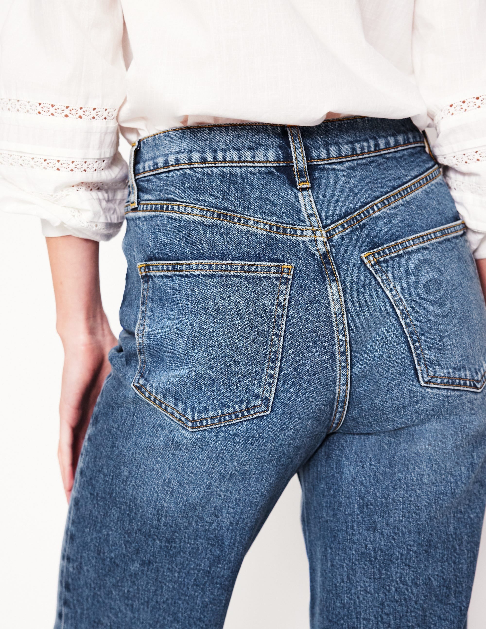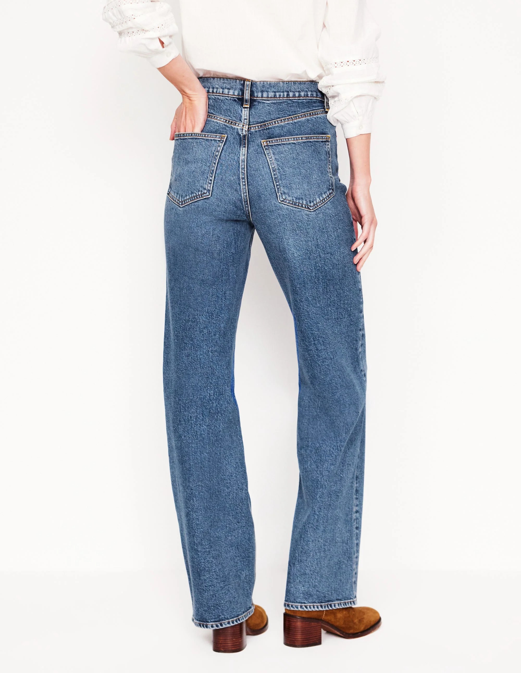 Dark Blue Mid - Rise Straight - Leg Jeans