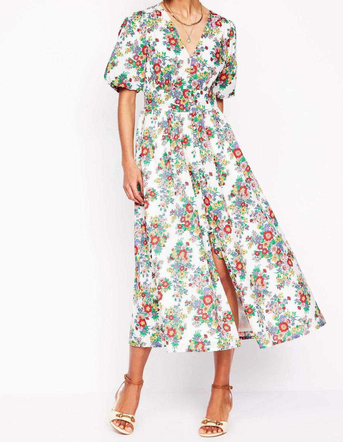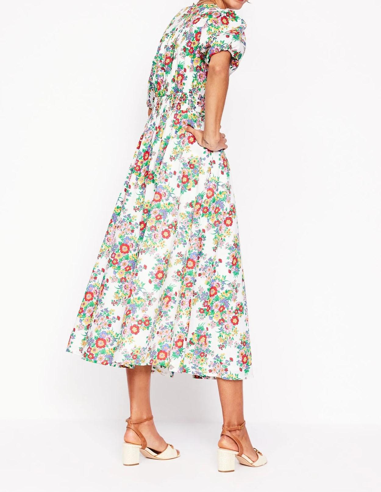White and Pink Floral Short - Sleeve Wrap Dress