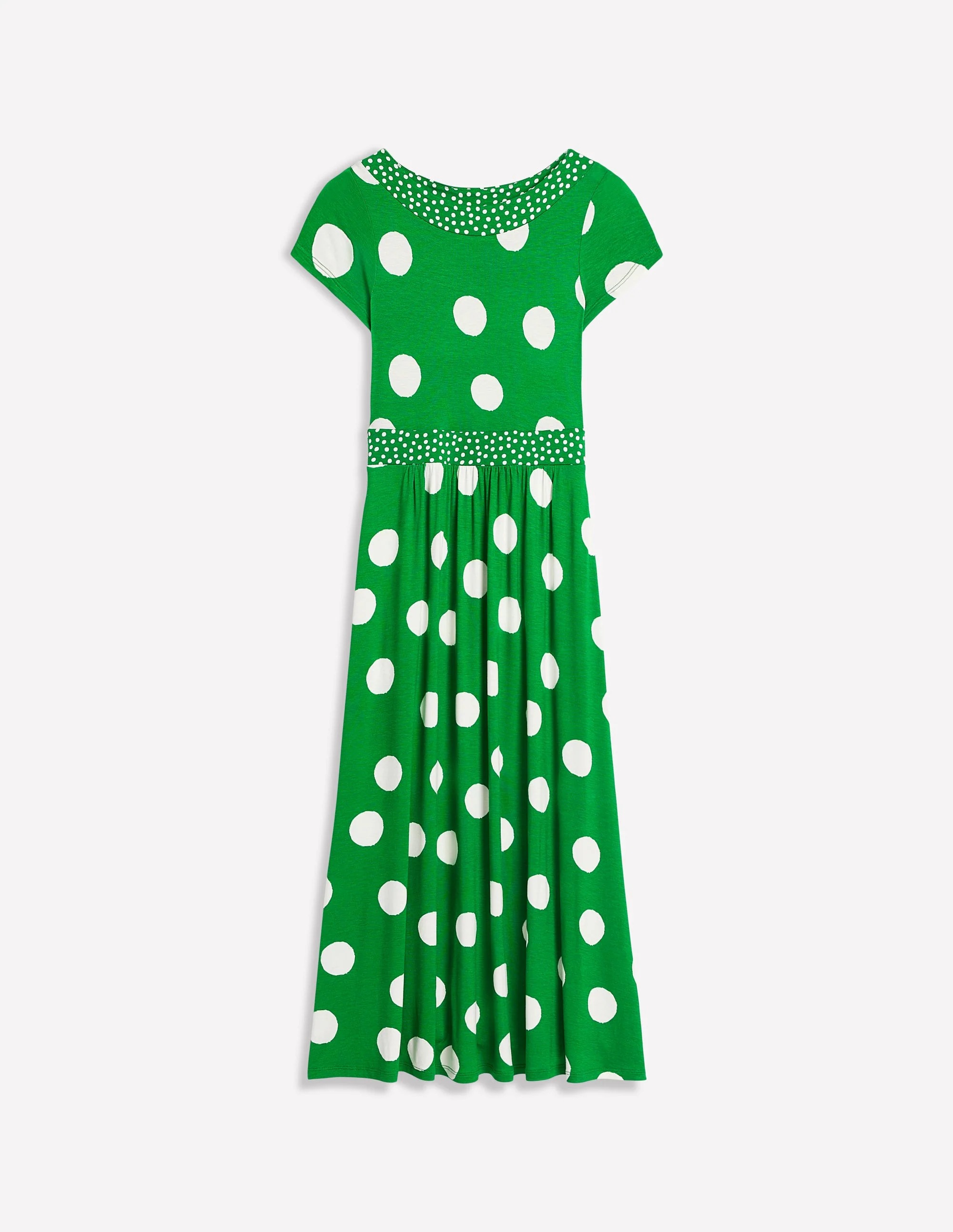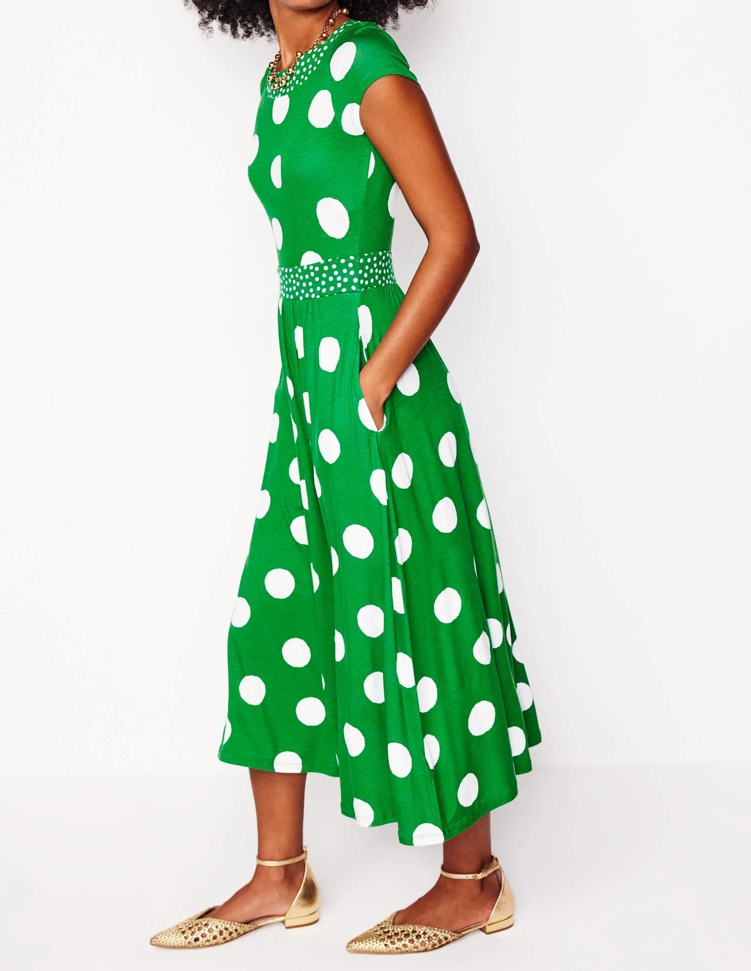 Green Polka - Dot Short - Sleeve Midi Dress