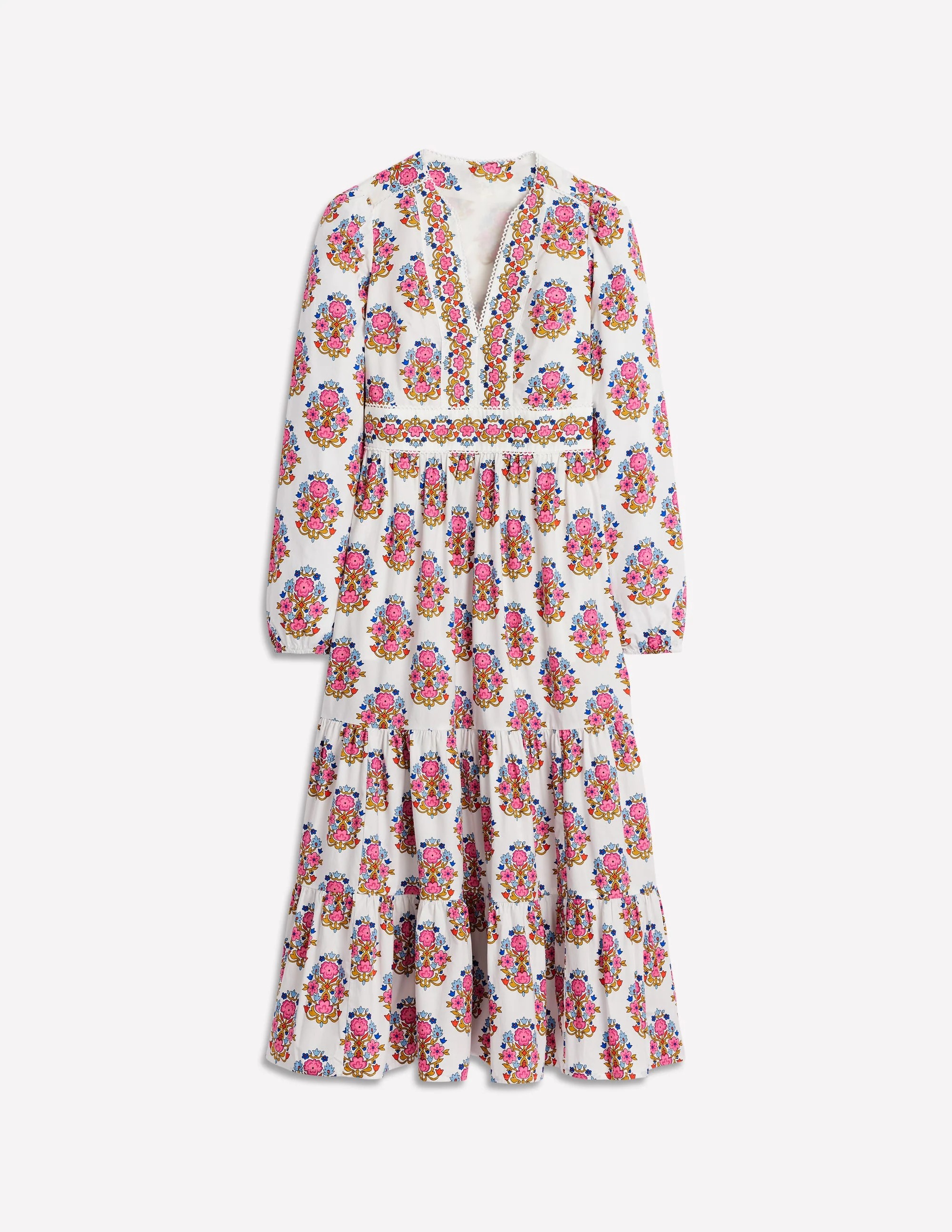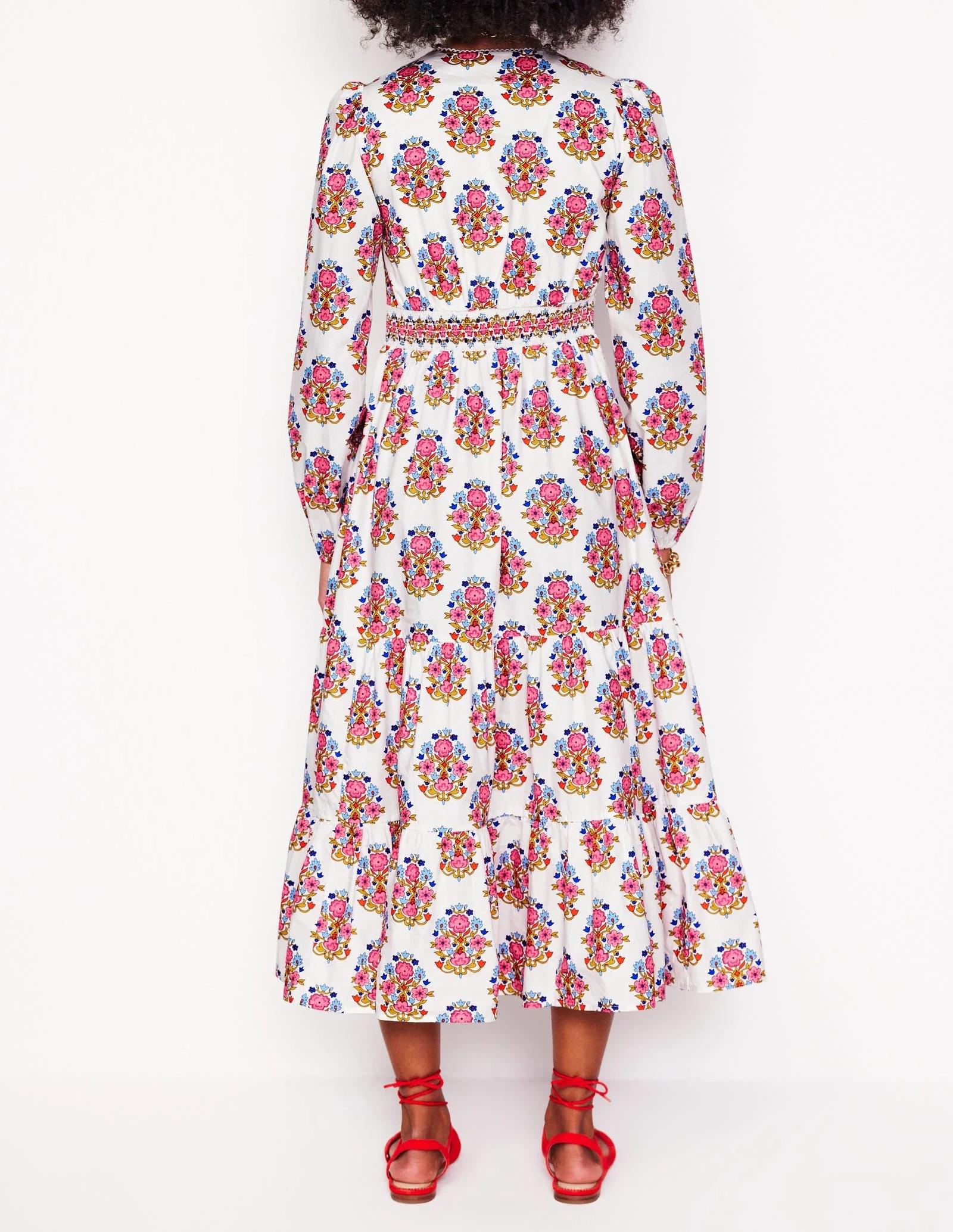 White and Pink Paisley - Print Cotton Midi Dress 691